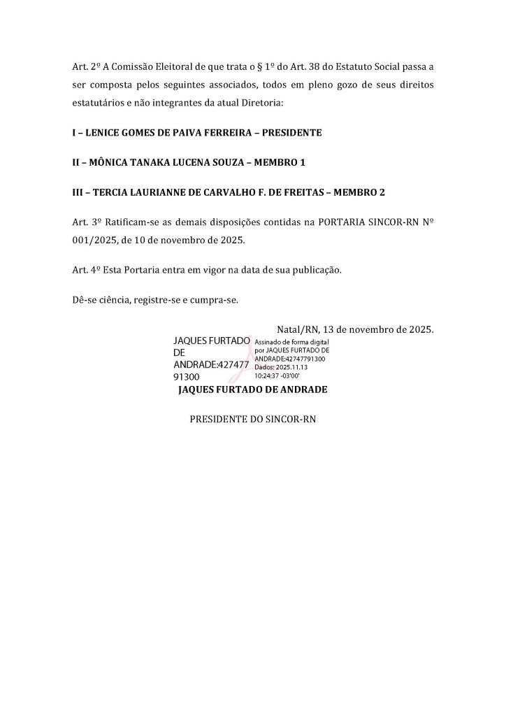 O Sincor informa que, conforme Portaria nº 002/2025, houve alteração na composição da Comissão Eleitoral responsável pelo processo de eleição para o exercício de 2025.